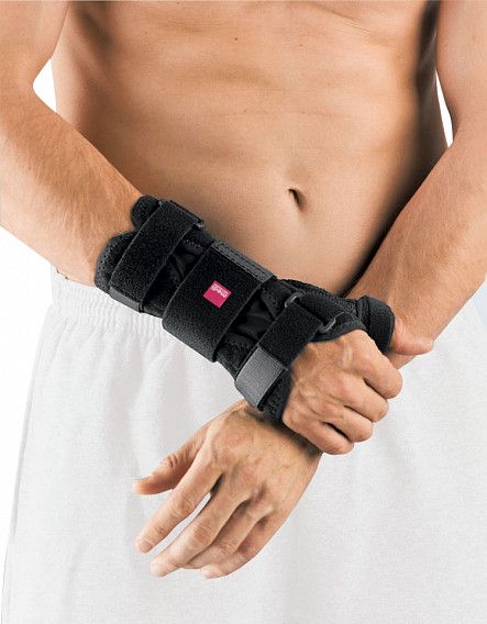 Шина Manumed T для лучезапястного сустава с поддержкой большого пальца – идеальное решение при лечении повреждений и заболеваний, когда требуется ограничить подвижность не только лучезапястного сустава, но и большого пальца кисти. Алюминиевая шина на ладонной поверхности имеет анатомическую форму. При необходимости ее можно моделировать индивидуально. Иммобилизация создает функциональный покой и ускоряет выздоровление. При этом сразу отмечается уменьшение интенсивности болевого синдрома.